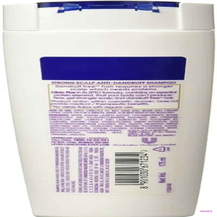 The Clinic Plus Strong Scalp Anti-Dandruff Shampoo is made to help with dandruff on your scalp. It's a shampoo that cleans your hair and might reduce dandruff. It aims to provide care for your scalp, addressing dandruff concerns and keeping your hair clean.