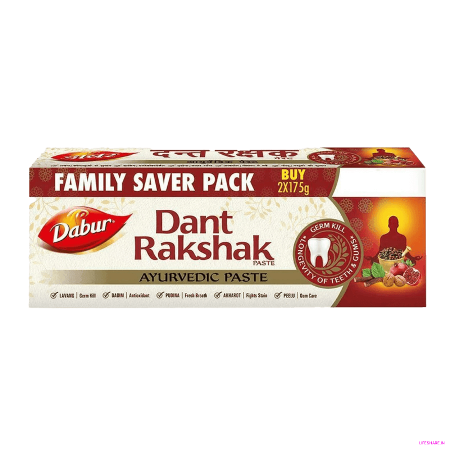Dabur Dant Rakshak is an Ayurvedic Paste from the House of Dabur. It is made with 32 potent and effective herbs to kill germs & give longevity to your teeth & gums. Each herb present has its own benefits like Lavang - helps kill germs, Pudina - gives fresh breath, Akhrot - fights stains, Aadim - antioxidant, Peelu - gum care.