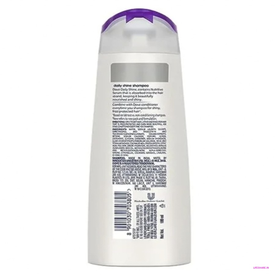 The Dove Daily Shine Shampoo is meant to make your hair shiny. It's a shampoo that cleans your hair and adds shine. It's designed to give your hair a glossy and smooth look, making it appear healthier and more vibrant.
