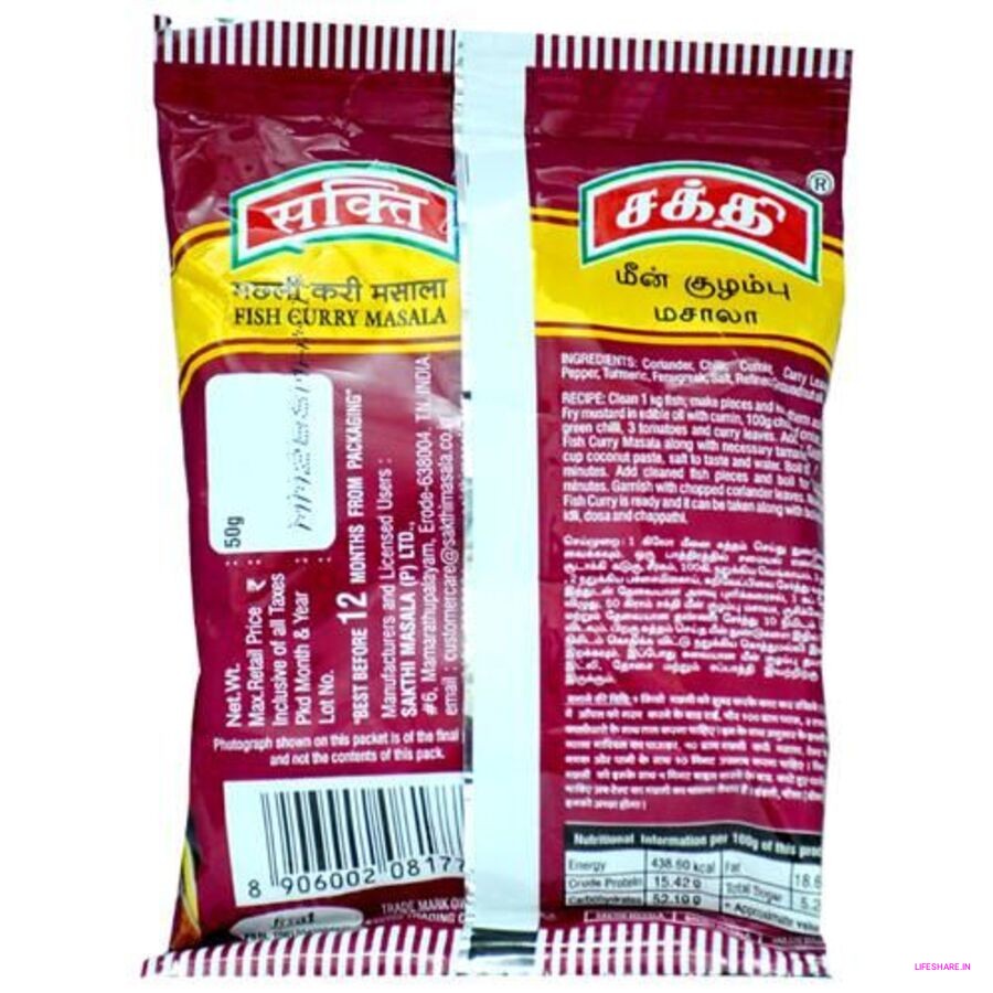 Sakthi Fish Curry Masala is a perfectly blended mix of authentic South Indian spices, crafted to bring out the rich, traditional taste of homemade fish curry. Made from premium quality ingredients, this masala adds a mouth-watering aroma, vibrant color, and irresistible flavor to your curry. Whether prepared with fresh sea fish or river fish, Sakthi Fish Curry Masala ensures a deliciously tangy and spicy taste every time. Ideal for both beginners and seasoned cooks, it helps you create a restaurant-style fish curry effortlessly at home.