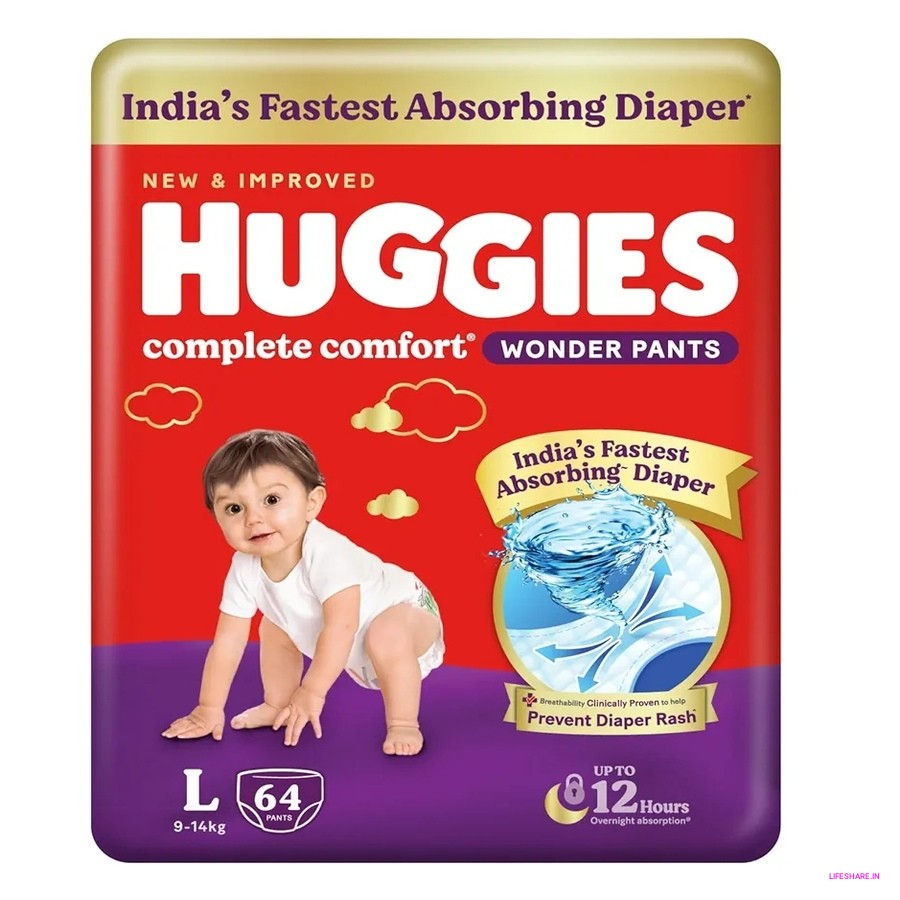 New & Improved Huggies Complete Comfort Wonder Pants - India's Fastest Absorbing diaper, Clinically Proven to Prevent Diaper Rash; Large size baby diaper pants