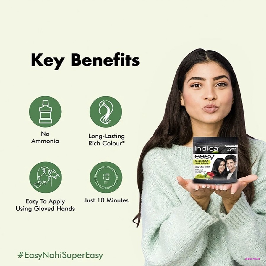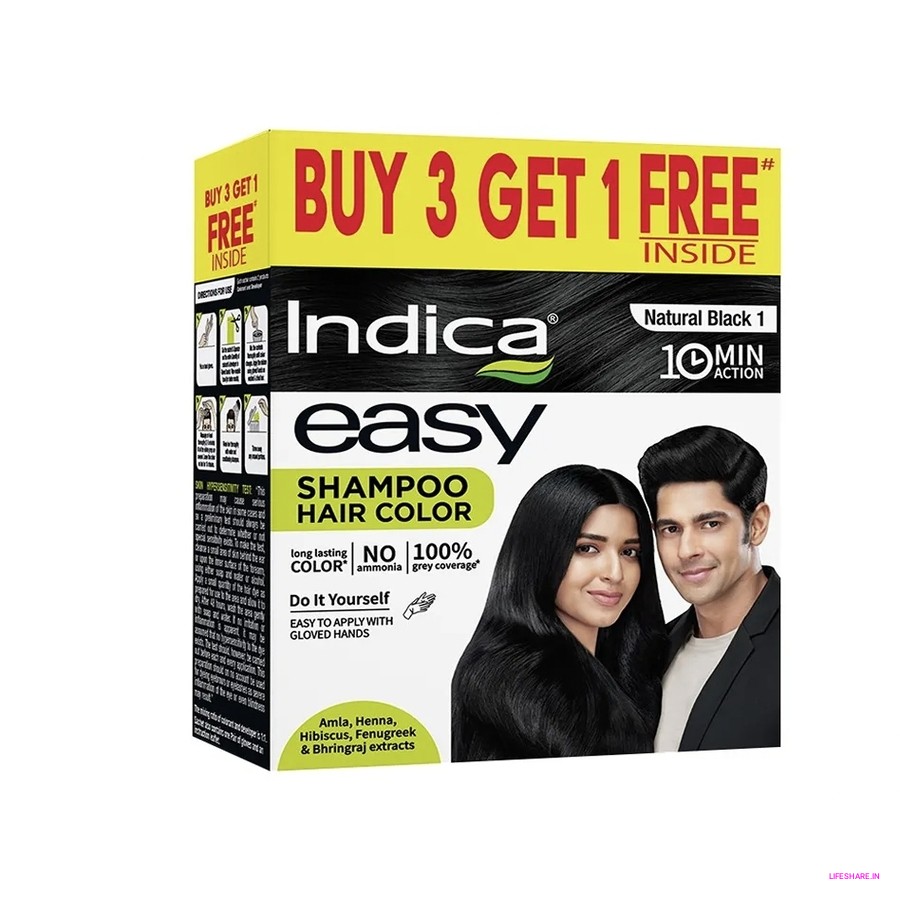 Indica's B3G1 pack offers value and convenience. The black hair color shampoo provides natural coverage, nourishes hair, and is easy to apply at home.