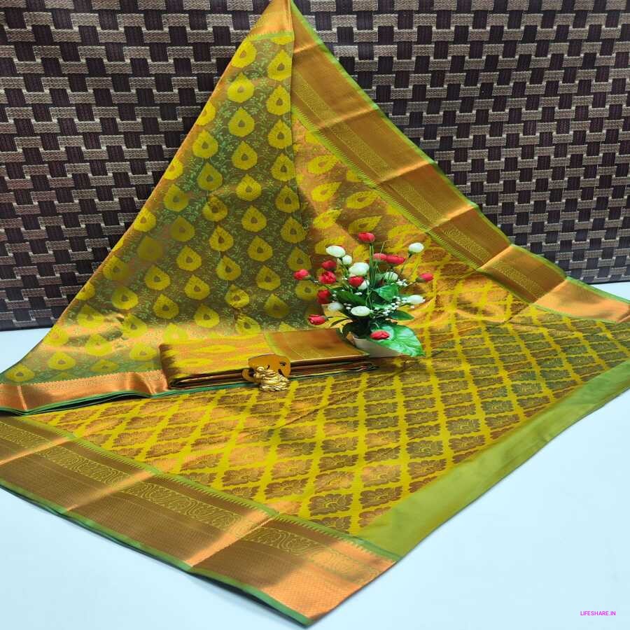 This Kanchipuram soft silk saree is Own manufacturing with high quality, perfect for any occasion. You can wear it to religious events, casual parties, or festive celebrations and still look stylish.It is perfect for wedding events. Its elegant look also makes it suitable for professional wear.You can drape it in many styles and pair it with a matching or contrasting blouse.Made from soft silk fabric, it feels smooth and luxurious. It comes with matching blouse material, helping women look stylish.