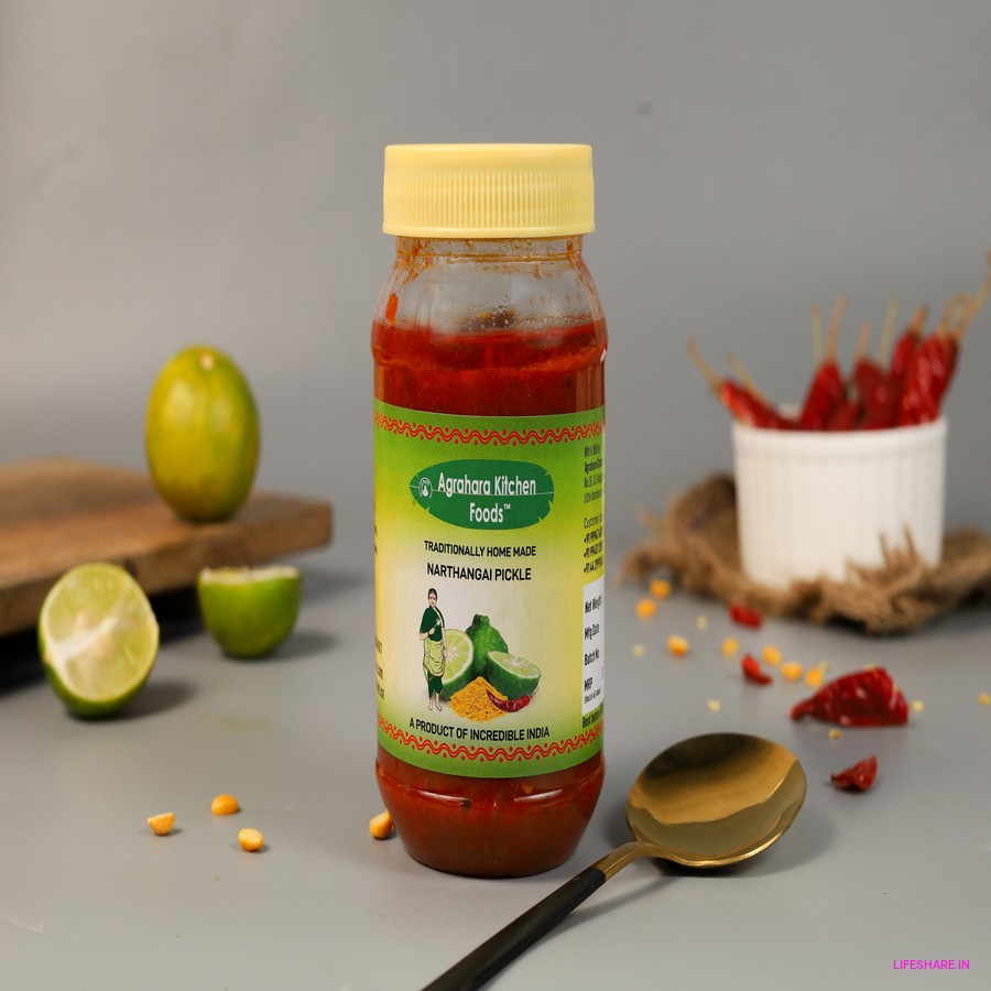 Introducing our delicious Narthanga Pickle, a 300gms jar of tangy and spicy goodness! Made with the finest quality narthanga fruits and a blend of aromatic spices, this pickle is the perfect accompaniment to any meal. Whether you're enjoying it with rice, roti, or as a side to your favorite snacks