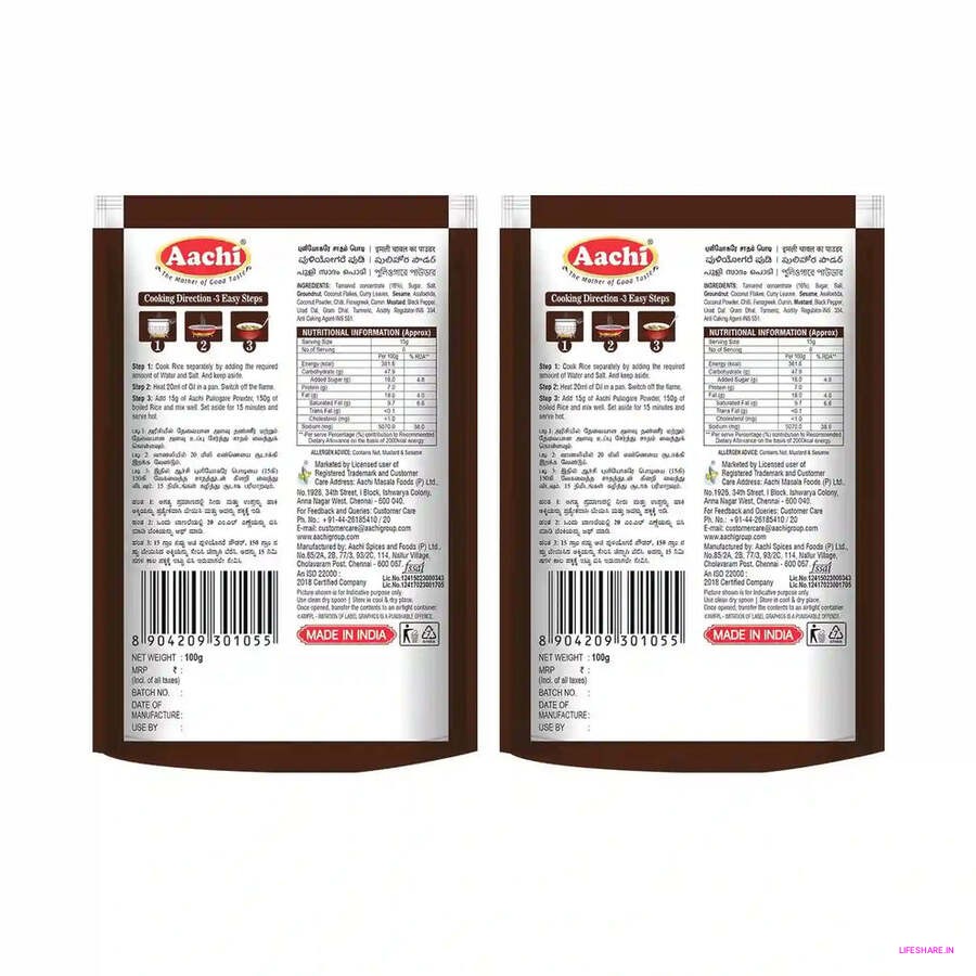 With Aachi Puliyogare Powder, making traditional tamarind rice has never been easier. Its perfect blend of tangy tamarind and aromatic spices allows you to enjoy a flavorful meal in minutes. Whether you're preparing a family lunch or adding variety to your weeknight dinners, this powder is a convenient way to savor the taste of home-cooked South Indian food.