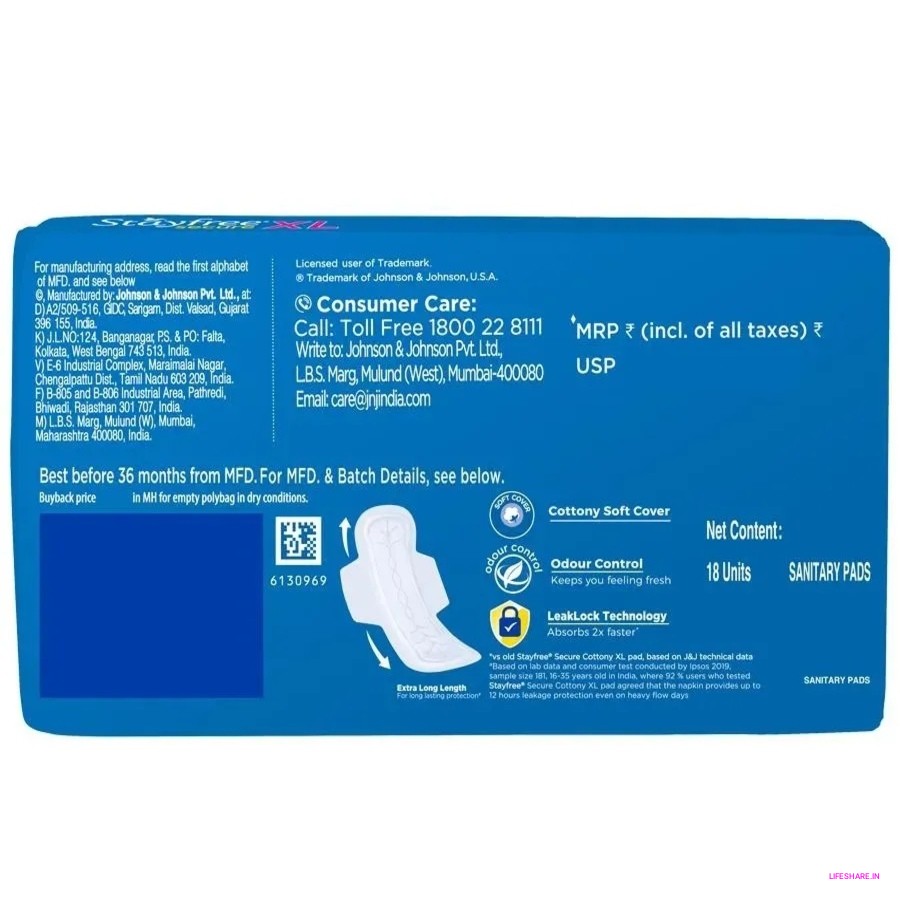Stayfree Secure Cottony - XL Sanitary Pads feature a soft and breathable cottony surface for comfort during your cycle. With excellent absorbency and protection, they ensure you feel confident and secure, allowing you to move freely without worries.