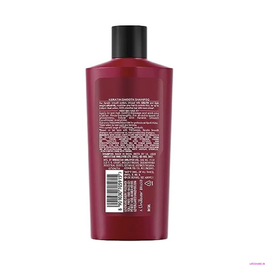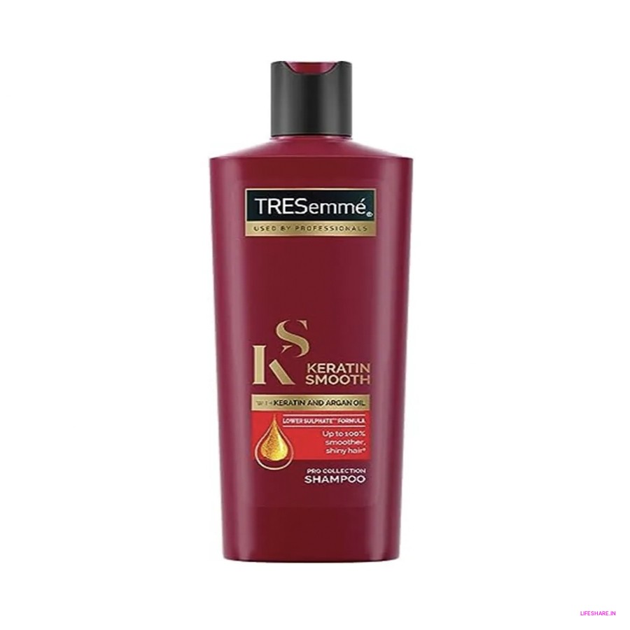The Tresemme Keratin Smooth Shampoo is a special shampoo from Tresemme. It's made to help make your hair smoother using keratin, a special ingredient. This shampoo comes in a bottle, and you use it when you wash your hair.