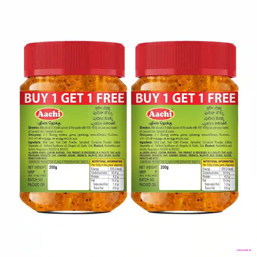 One of the biggest advantages of Aachi Pudhina Thokku is its convenience. Made with natural ingredients and carefully prepared, this thokku is ready to use straight from the jar. There’s no need for extra preparation—just scoop and serve. It’s the perfect solution for busy days when you need something quick to accompany your meal without compromising on flavor.